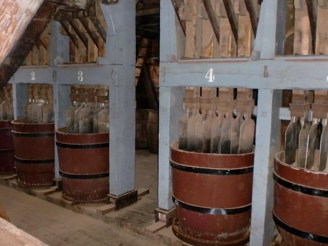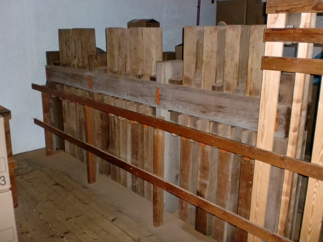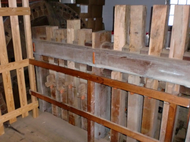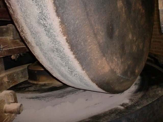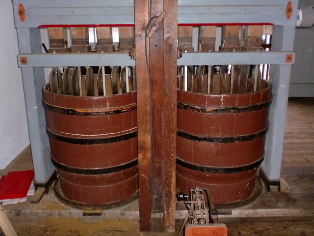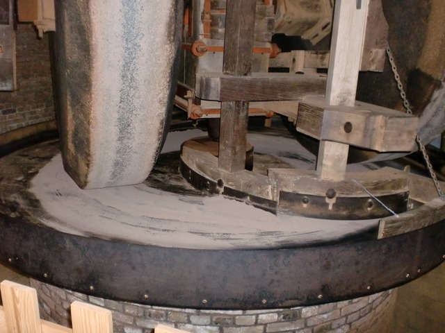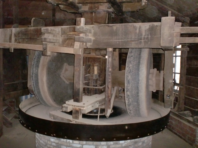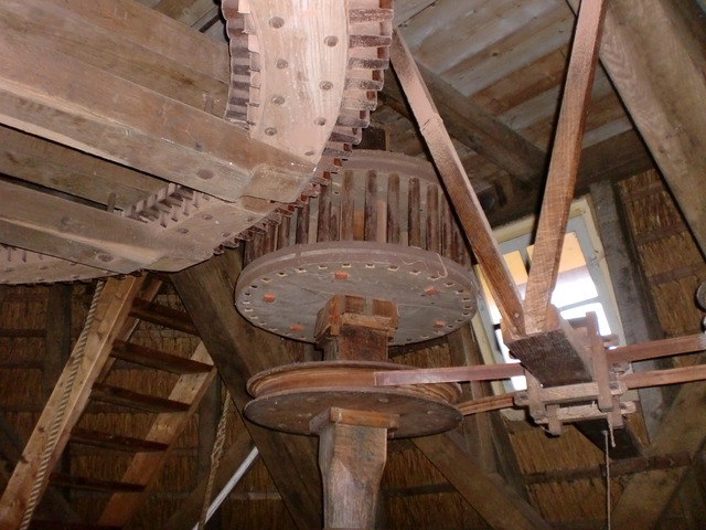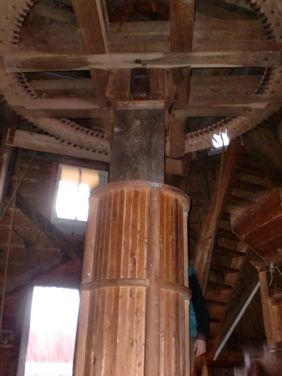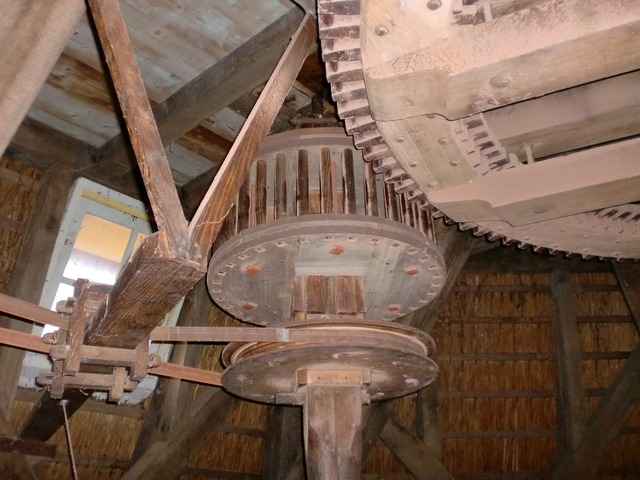 A look at (some of) the inner workings of the windmill. The giant wooden cogs are used to shift the wind power to the cutting and grinding machinery below.