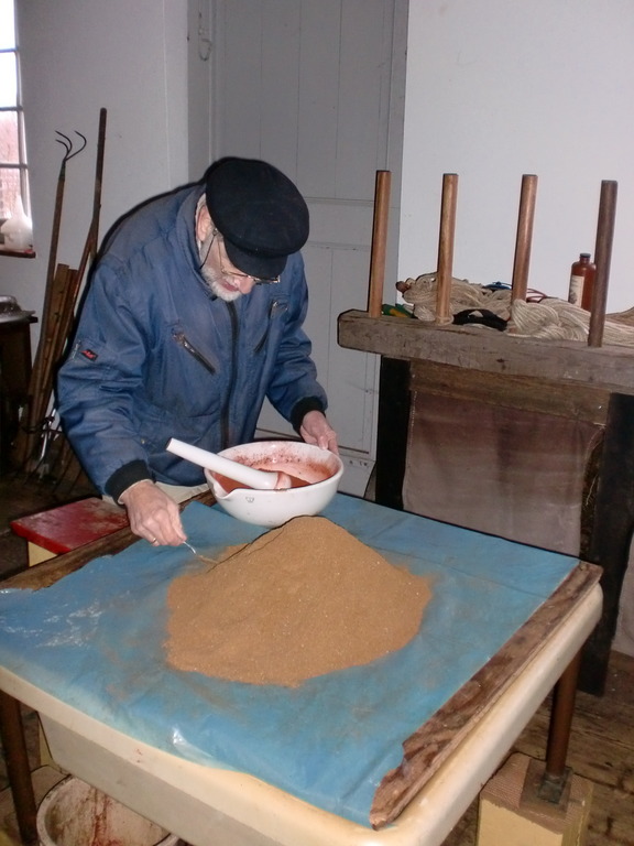 This is where it all happens: snuff miller Jaap Bes mixing and flavouring the finely ground tobacco. Some of the tobacco in the picture may have ended up in your nose!