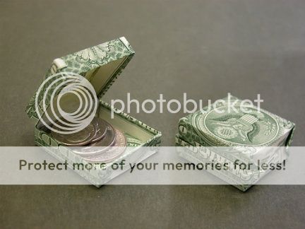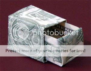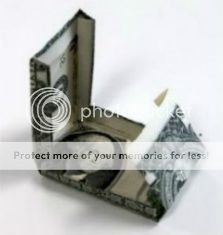You could try the dollar bill boxes. I imagine the thinner ones would be best for carrying round/showing off, or or you can use styled paper with a design already on it. It’s defintely something to talk about at the very least.